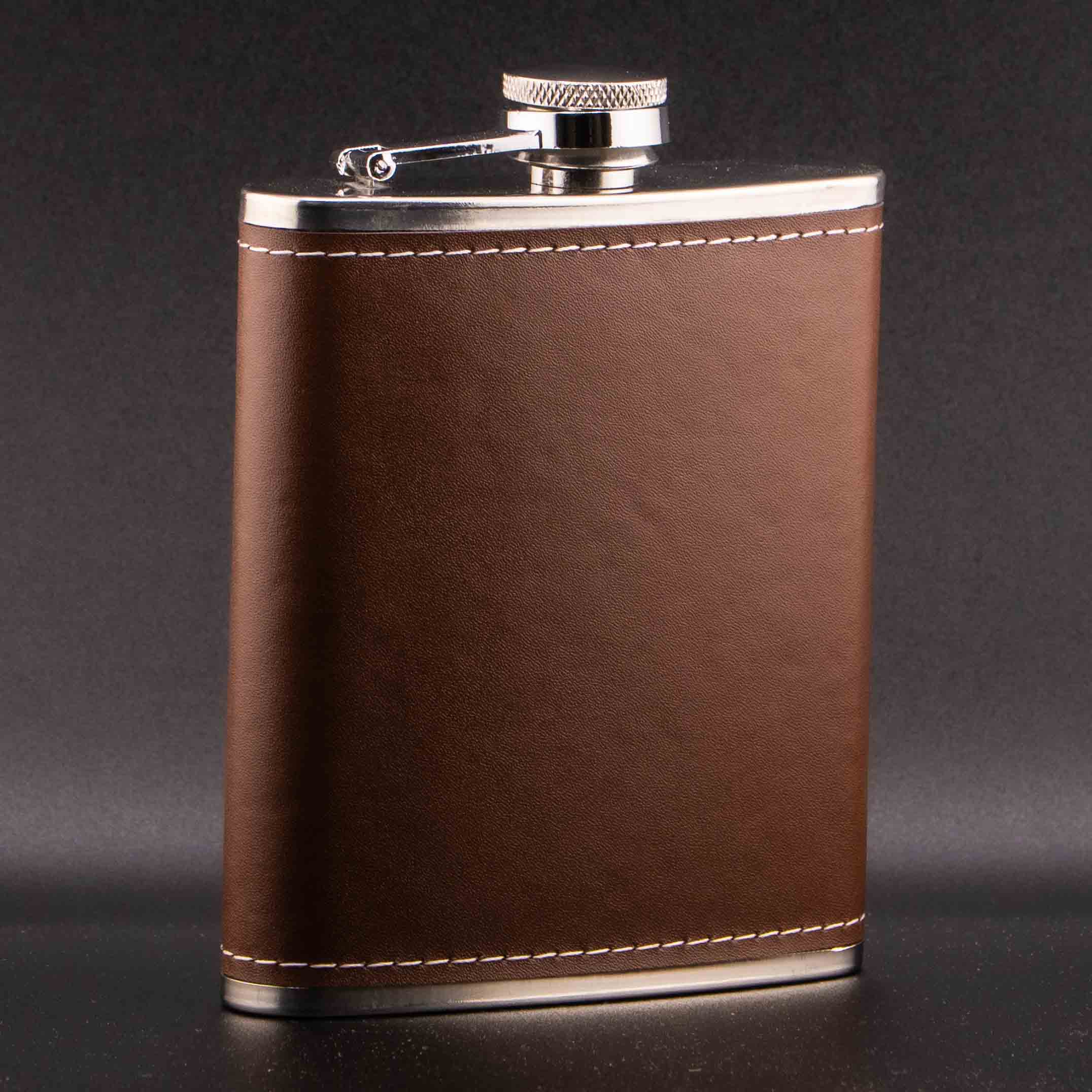 VINTAGE SPIRIT, METALNA PLJOSKA OBLOZENA EKO KOZOM U BRAON BOJI, 210ML
